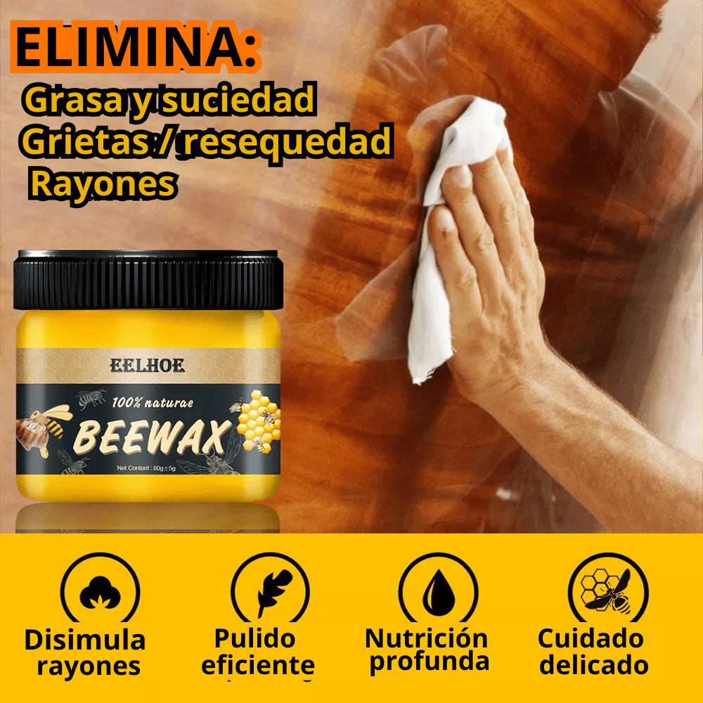 Sí, para daños superficiales. Beewax rellena micro-rayones, nutre la madera reseca, y mejora visiblemente marcas de agua leves. Sin embargo, si el daño es profundo (astillado, madera resecada gravemente), puede necesitar lijado previo o reparación profesional.