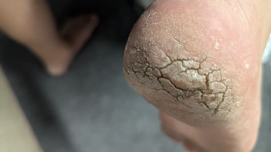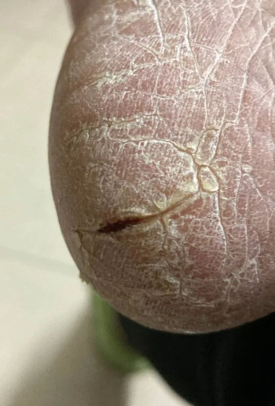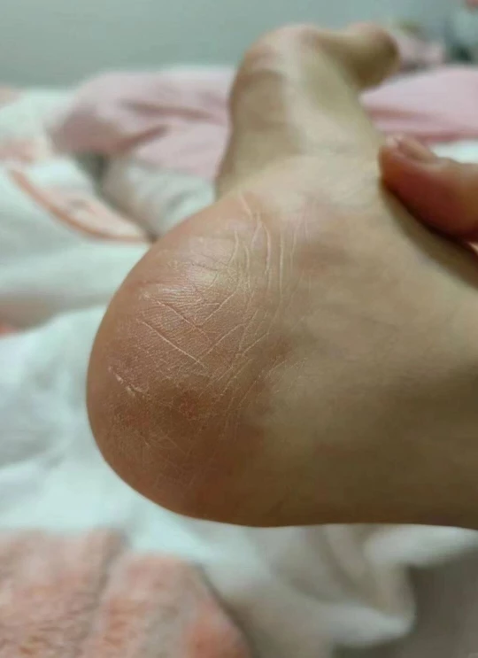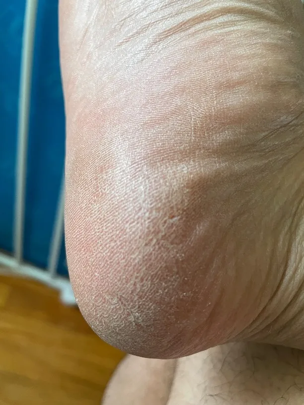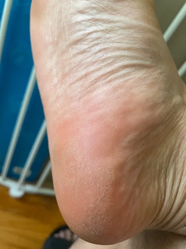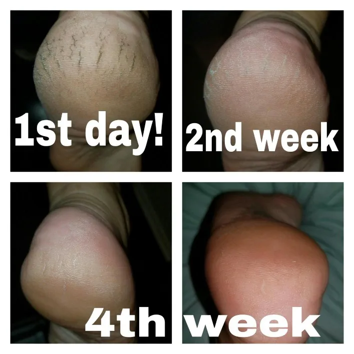 Ambos talones están muy secos y agrietados. Este producto es excelente. Después de una semana aplicando la crema en ambos talones todas las noches, los talones están mucho mejor. Me encanta esta crema porque es inodora, no grasosa y fácil de aplicar. La crema ofrece una excelente relación calidad-precio.