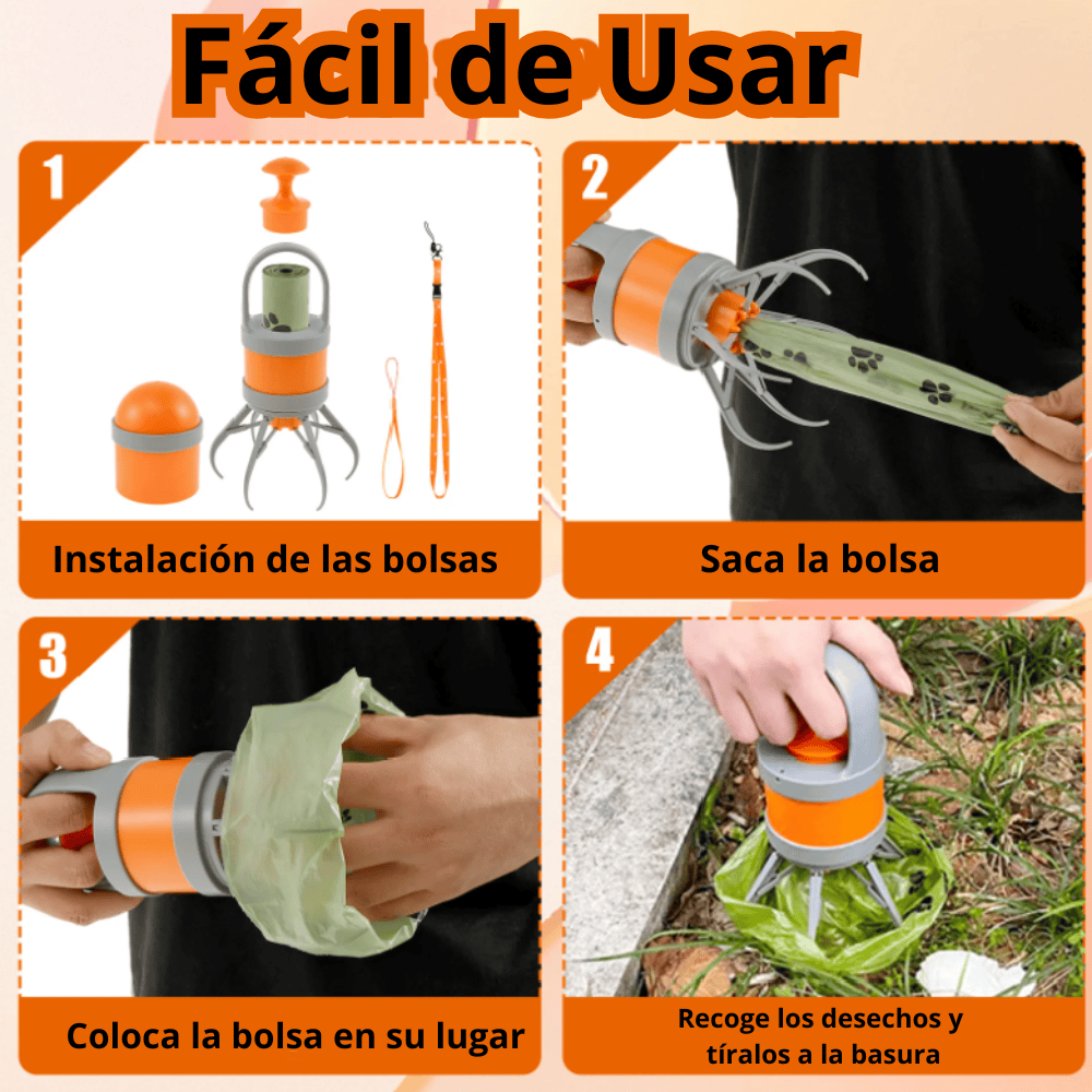 No. Su mango ergonómico facilita un agarre cómodo y un manejo sencillo. Con un solo movimiento puedes recoger los desechos sin esfuerzo y sin ensuciarte las manos.