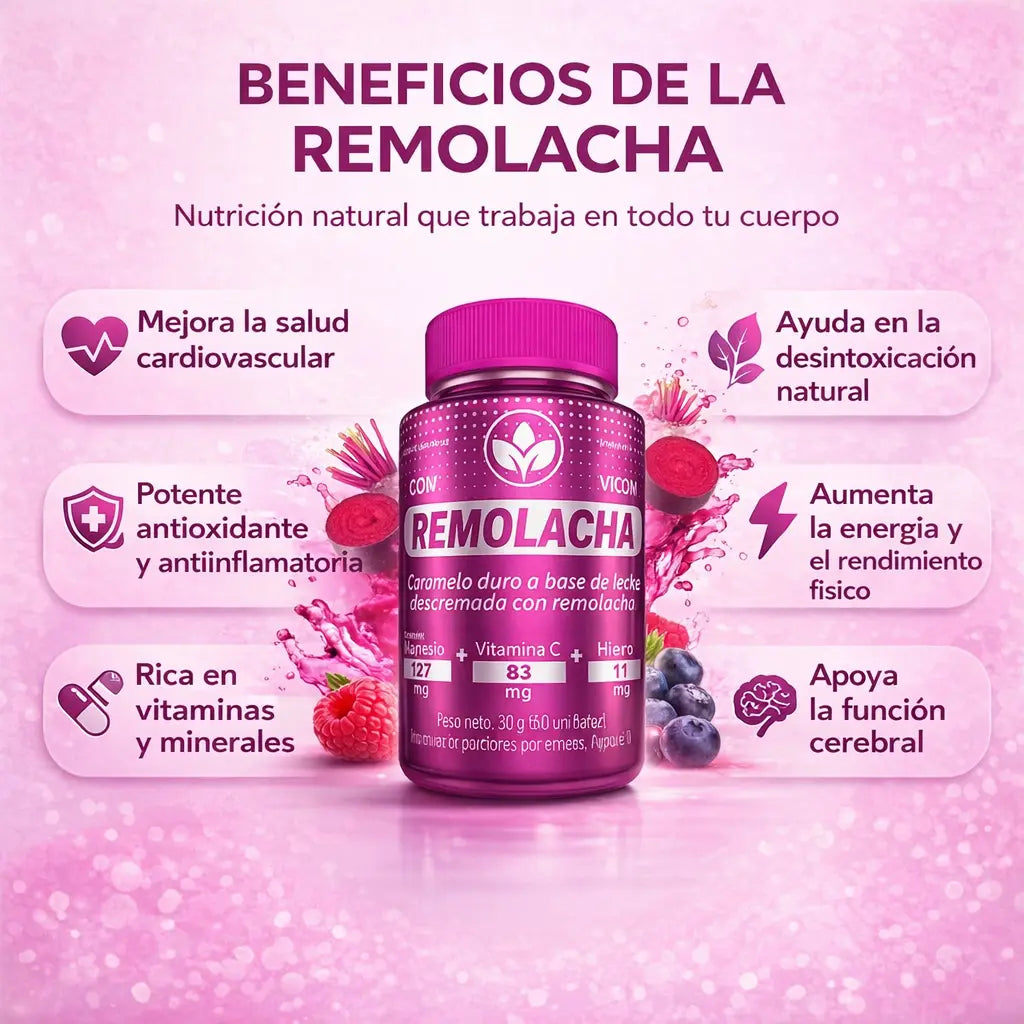 El producto de remolacha ayuda a mejorar la circulación, aumentar la energía natural, reducir la fatiga física y mental y apoyar la salud cardiovascular, gracias a sus nitratos, vitaminas y antioxidantes naturales.