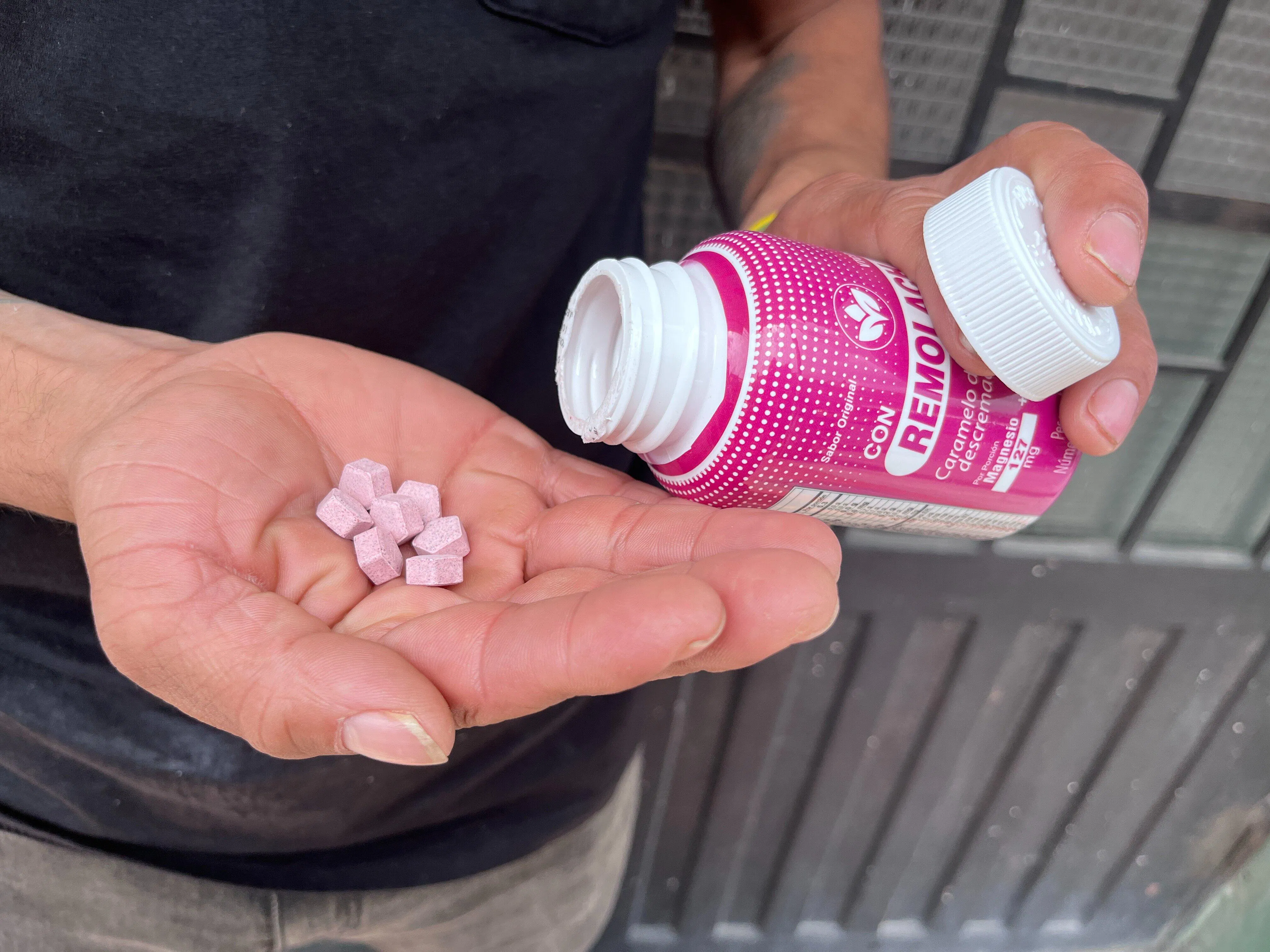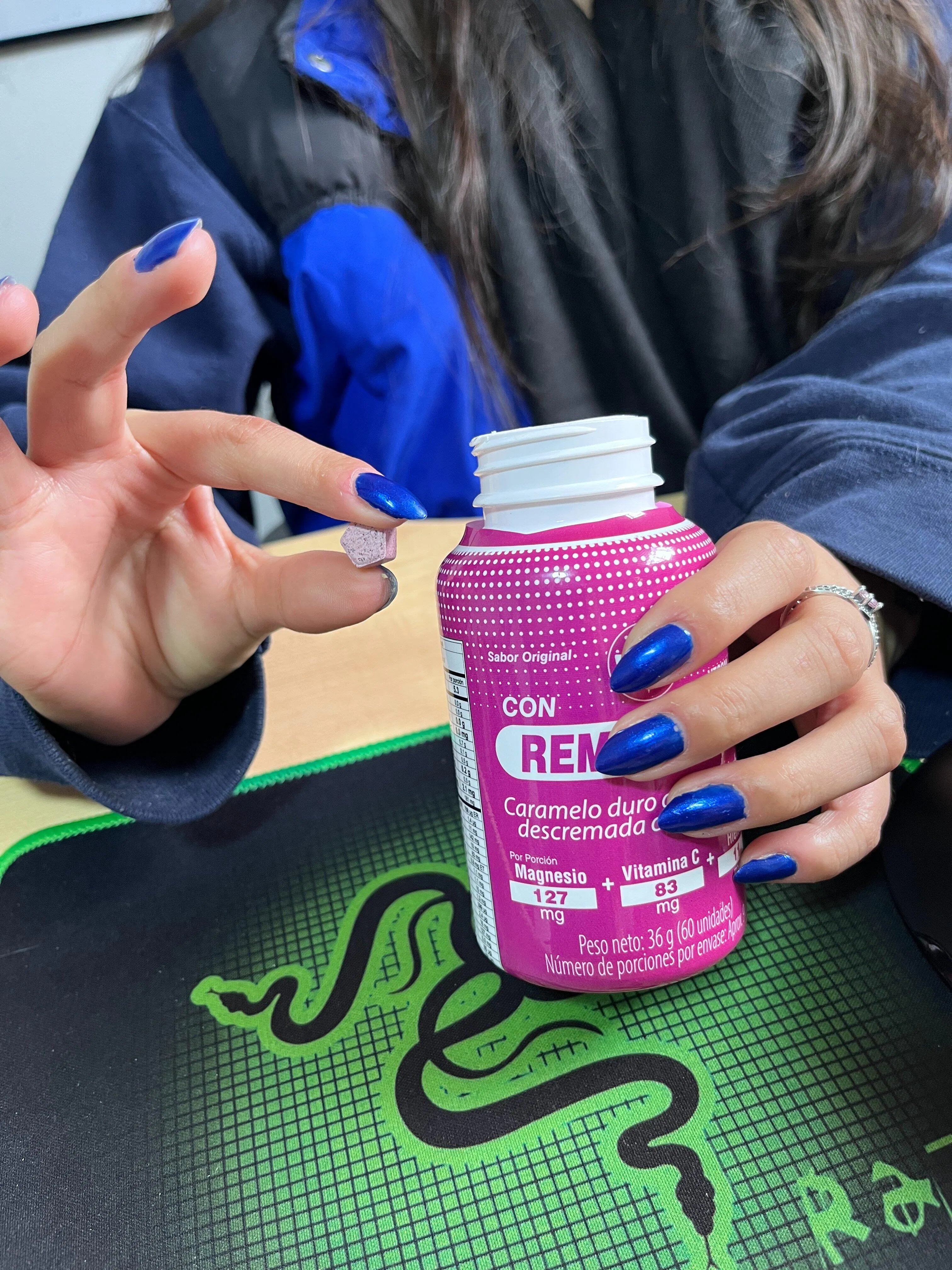 citrato de magnesio, carbonato de calcio, vitamina C, sulfato ferroso, vitaminas A, D, E, B1, B6, B12, ácido fólico, zinc, selenio y colorante natural rojo de remolacha.