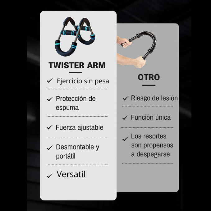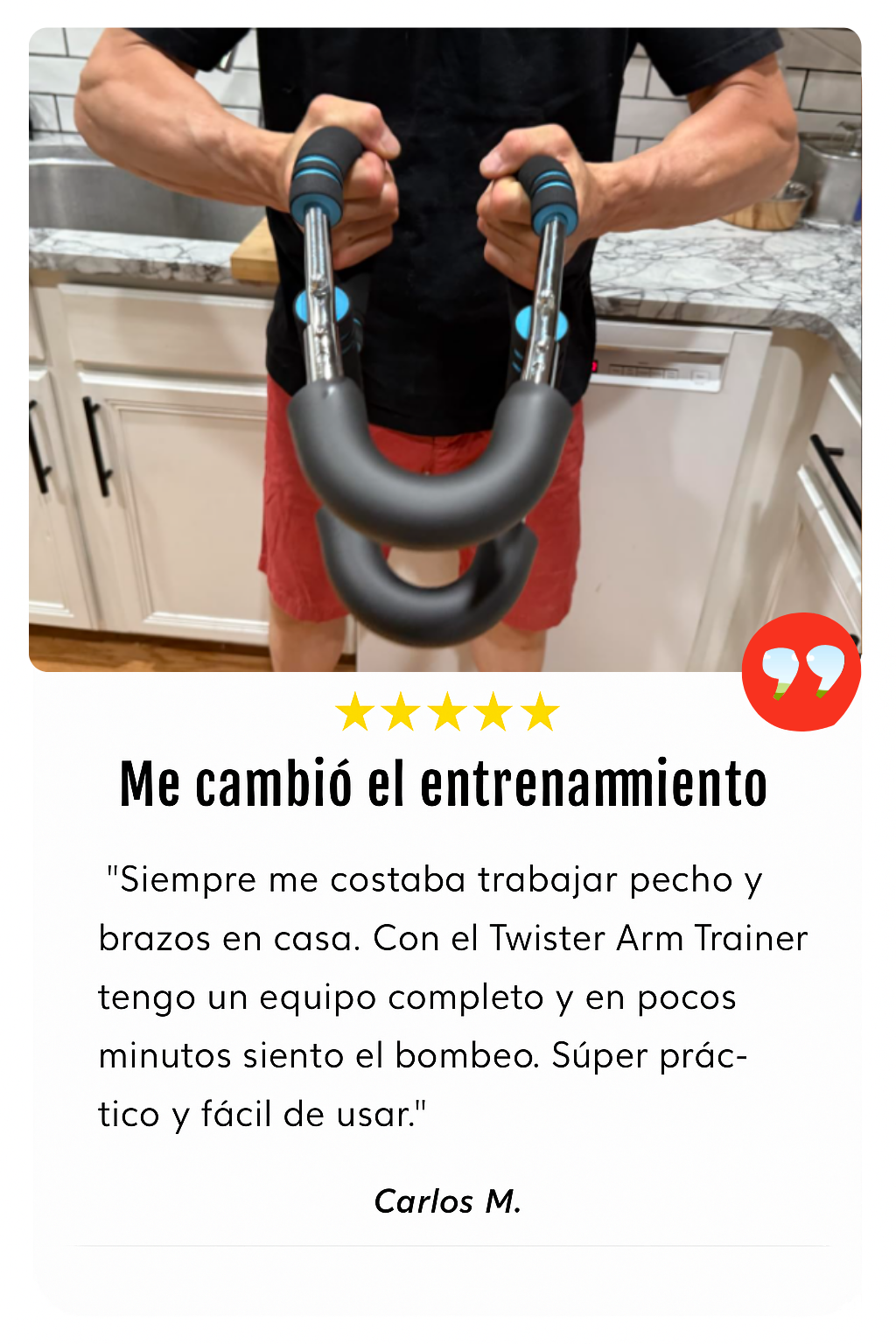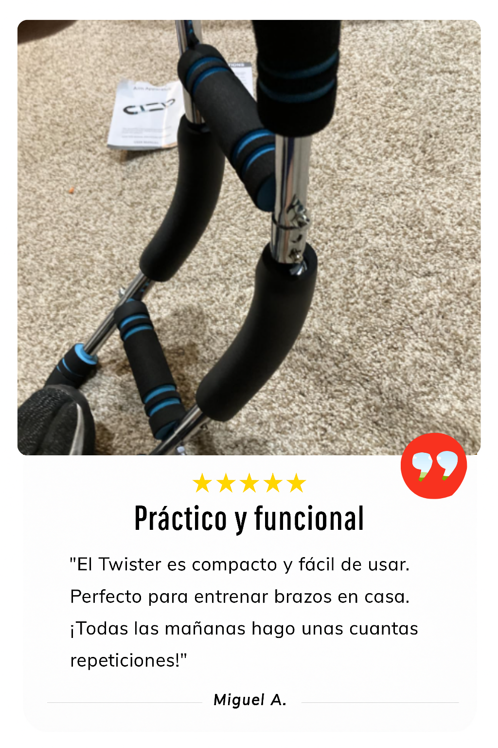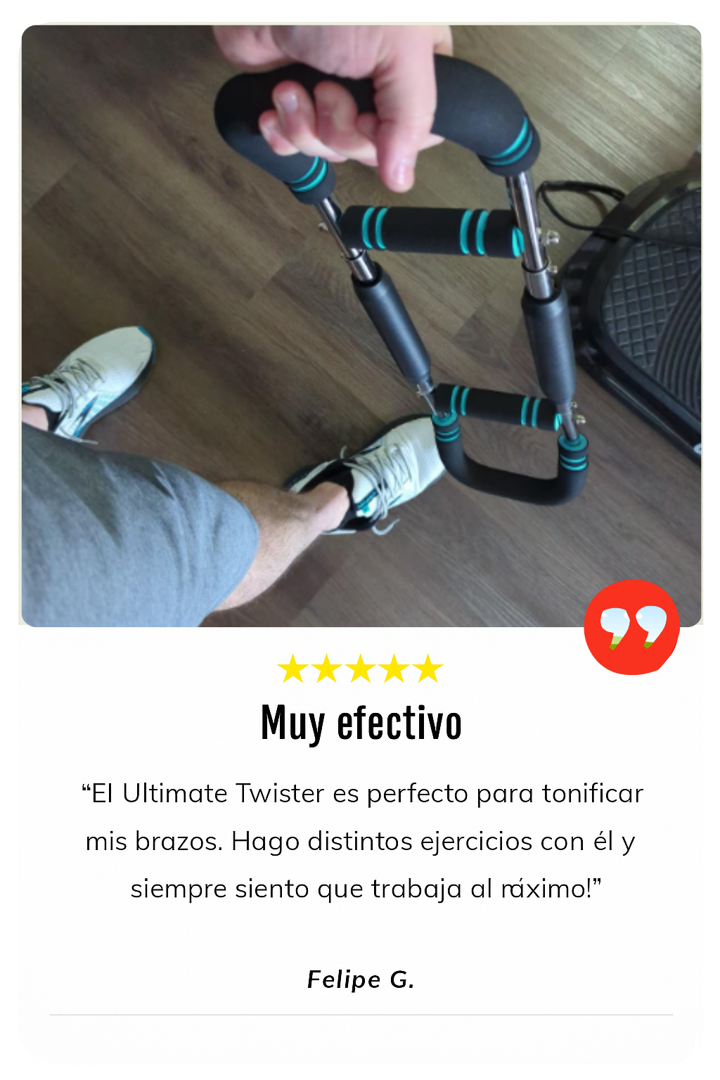 El Twister Arm trabaja principalmente brazos, pecho, hombros y espalda. Es un accesorio multifuncional que te ayuda a tonificar la parte superior del cuerpo con distintos ejercicios.
